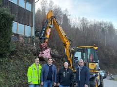 v. l. n. r. Klaus Kimmig, Ortsvorsteher Matthias Fischer, Betriebsleiter der Firma Schnell Udo Kimmig und Bürgermeister Uwe Gaiser