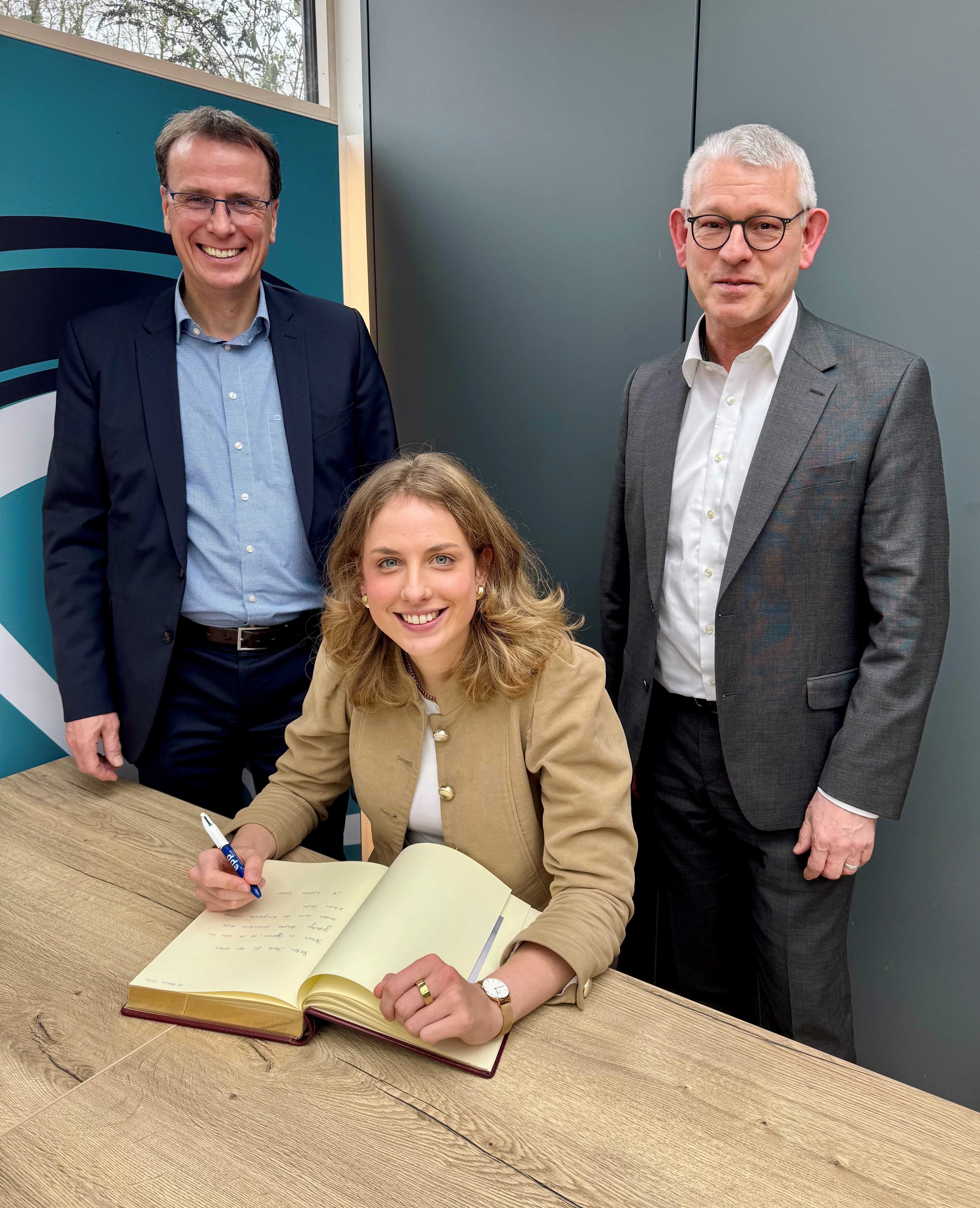 Gemeinsam mit Landtagskandidat Volker Schebesta und Bürgermeister Uwe Gaiser besuchte sie die Roland Erdrich GmbH, um sich vor Ort ein Bild vom Unternehmen zu machen. Im Anschluss an die Betriebsbesichtigung verewigte sich Dr. Wibke Winter mit einigen persönlichen Worten im Goldenen Buch der Stadt Oppenau.