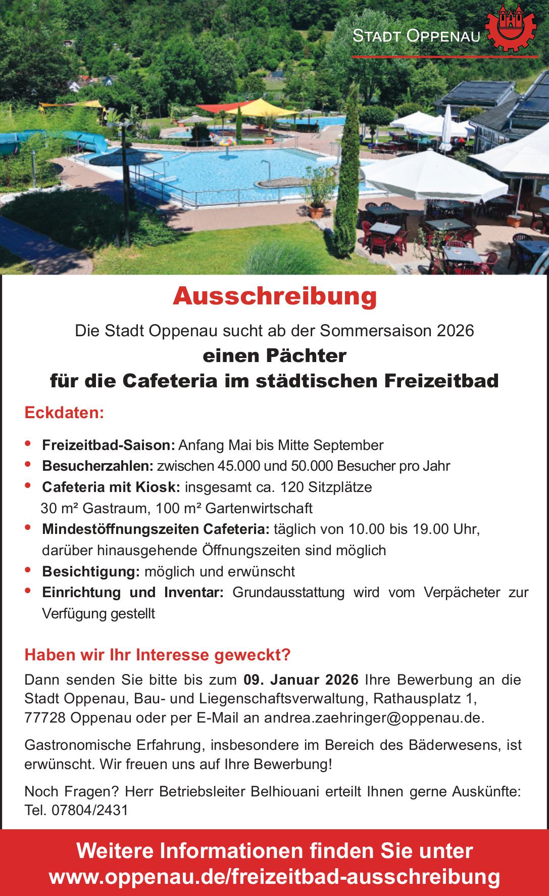 Neuer Pächter für Cafeteria im Freizeitbad gesucht!